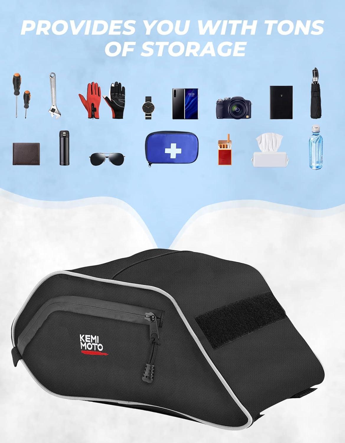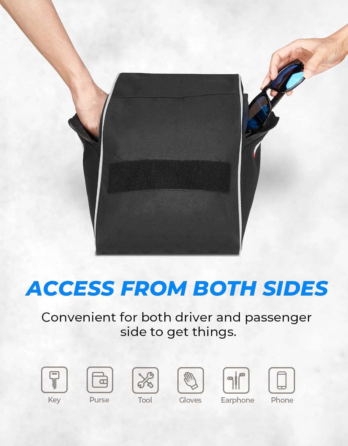 Large Capacity of Storage–KEMIMOTO storage bag will provide you with a lot of space to keep things you usually need for driving, such as gloves, wrenches, sunglasses, first aid kits, water bottles…