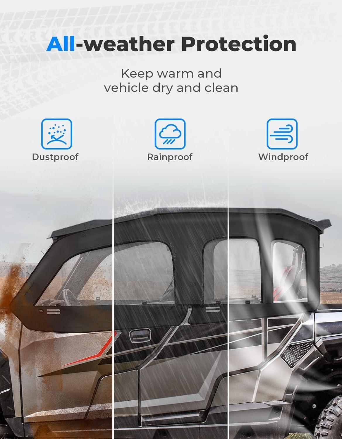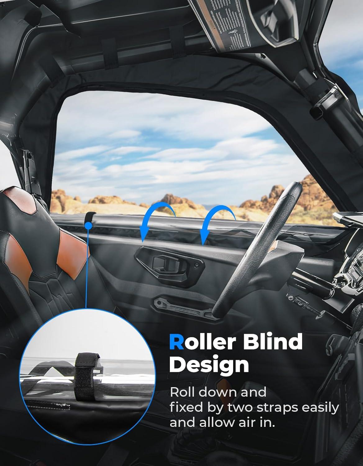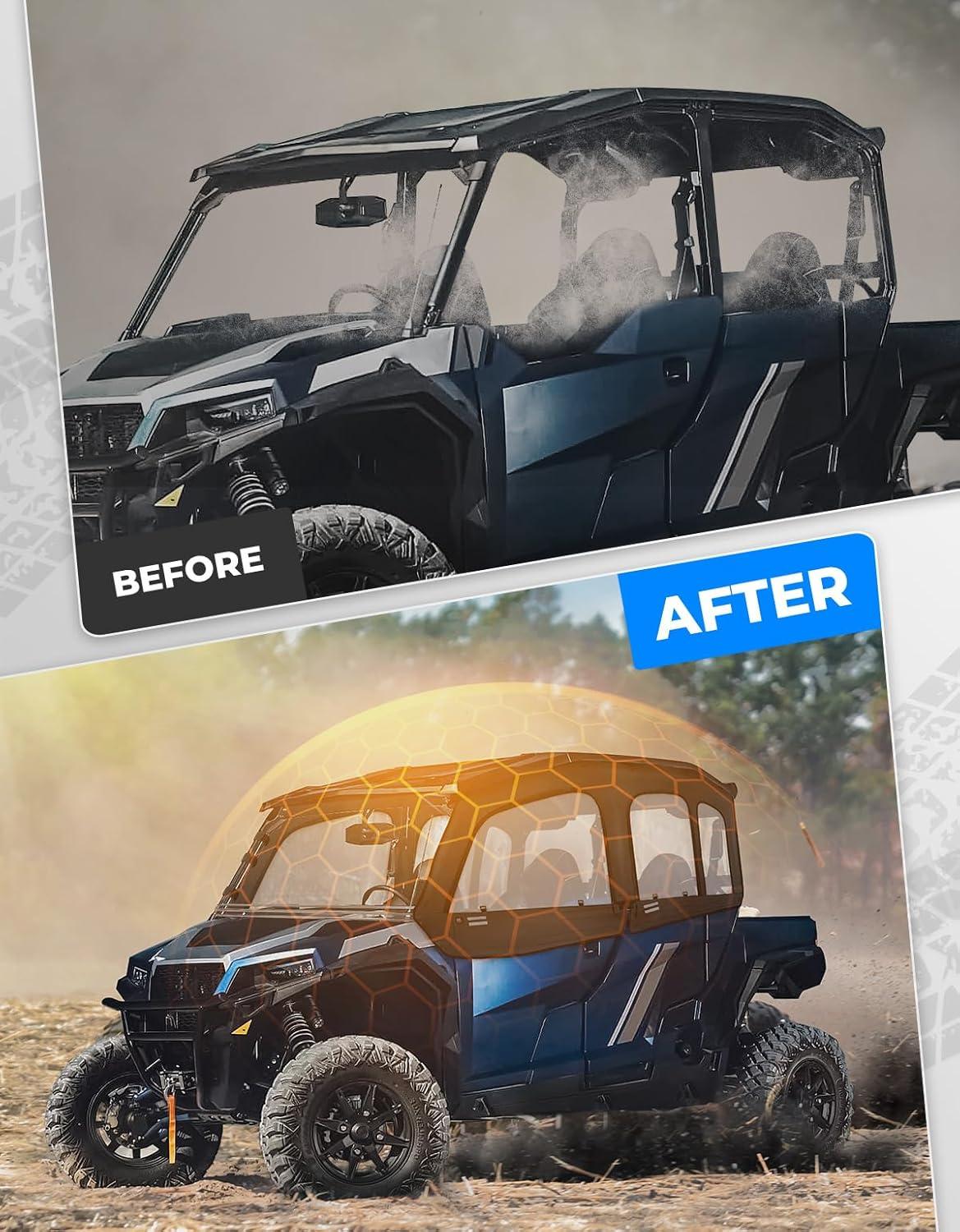 Perfect Fit–KEMIMOTO Soft upper doors windows compatible with Polaris General 4 1000 2017-2026, XP 4 1000 2020-2026. Added a design with Removable straps and mirror holes. Fits well with the roof, windshield, and just fits roll bar mirrors