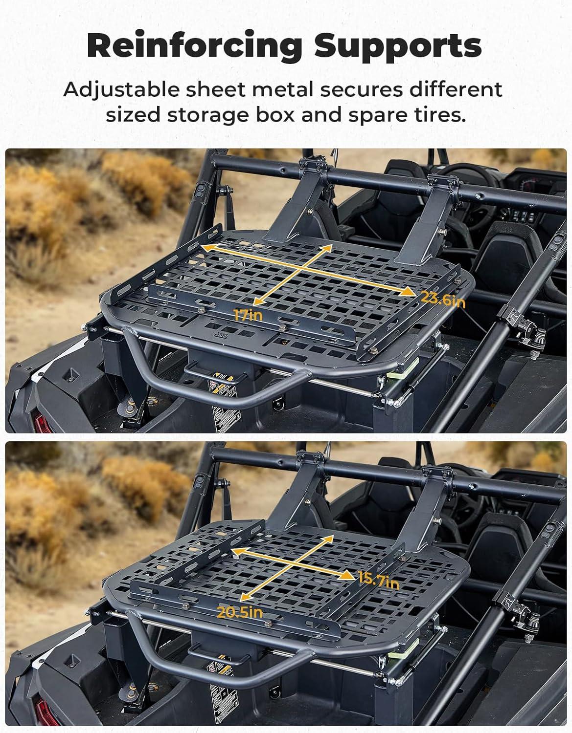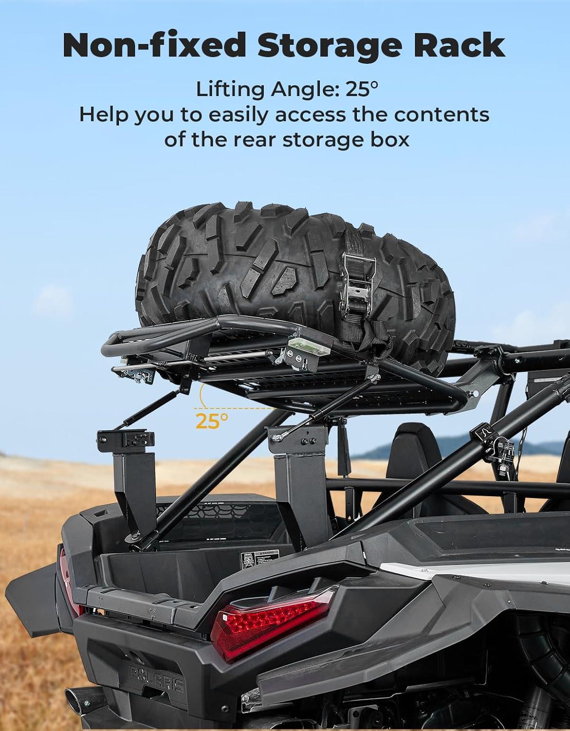Fitment: This UTV cargo storage rack is specifically designed for the model which is compatible with 2024-2025 Polaris RZR XP 1000 / XP 4 1000. It provides additional space for off-road trips to safely carry more gear and equipment, making it easier for you to access essential items during outdoor adventures