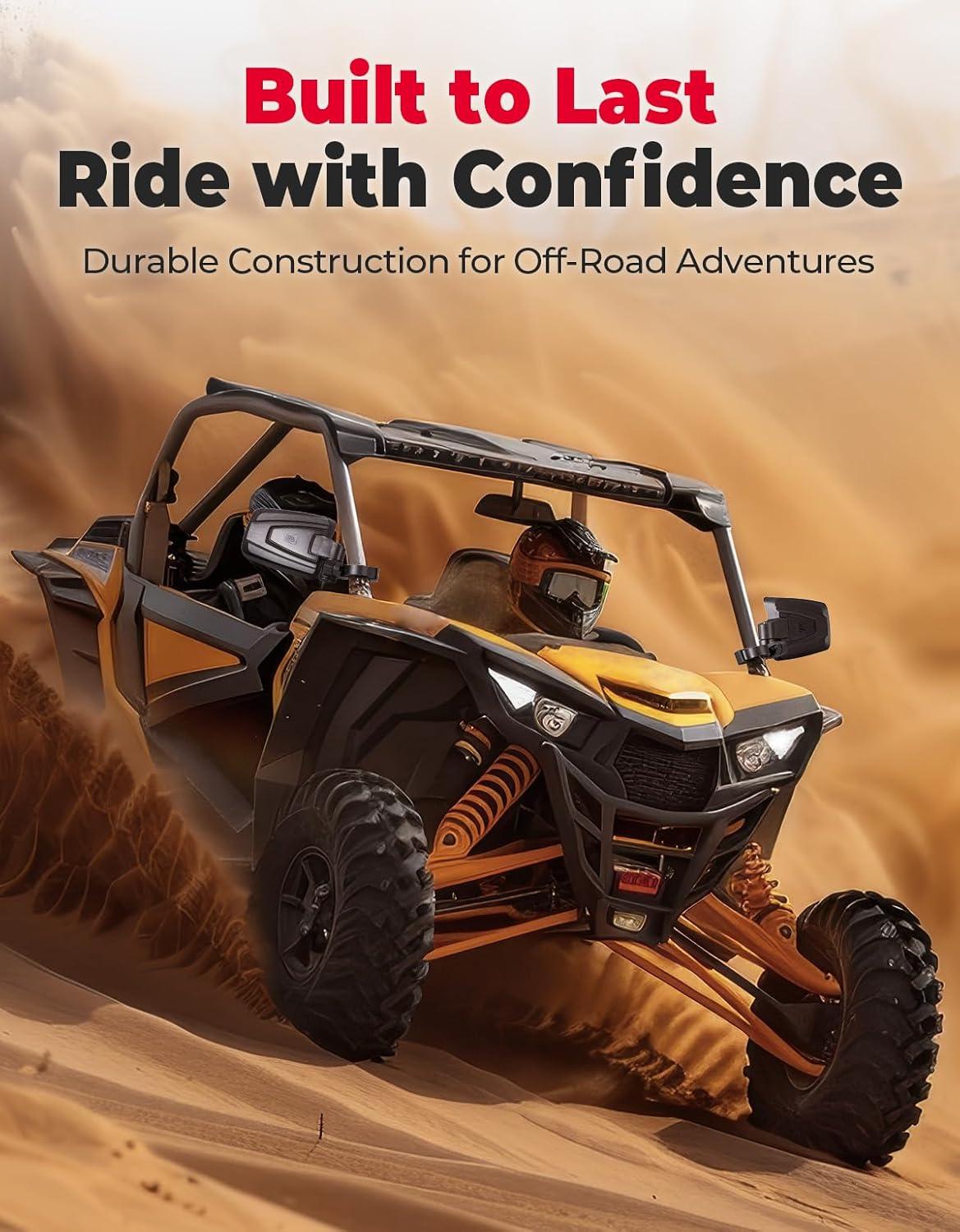 Fit 1.65″-2″ Roll Bar: These mirrors fit most UTVs, compatible with Polaris RZR, Can-Am X3, Pioneer, Talon, Mule, and CFMOTO, Hisun 500 700, Axis 500 700, Coleman 500 700, Massimo MSU500. But it does not fit Pro-fit models or outside 1.65-2 inches, and it is not compatible with Ranger, Defender, Pioneer 500/520/700, and ZForce 800/500