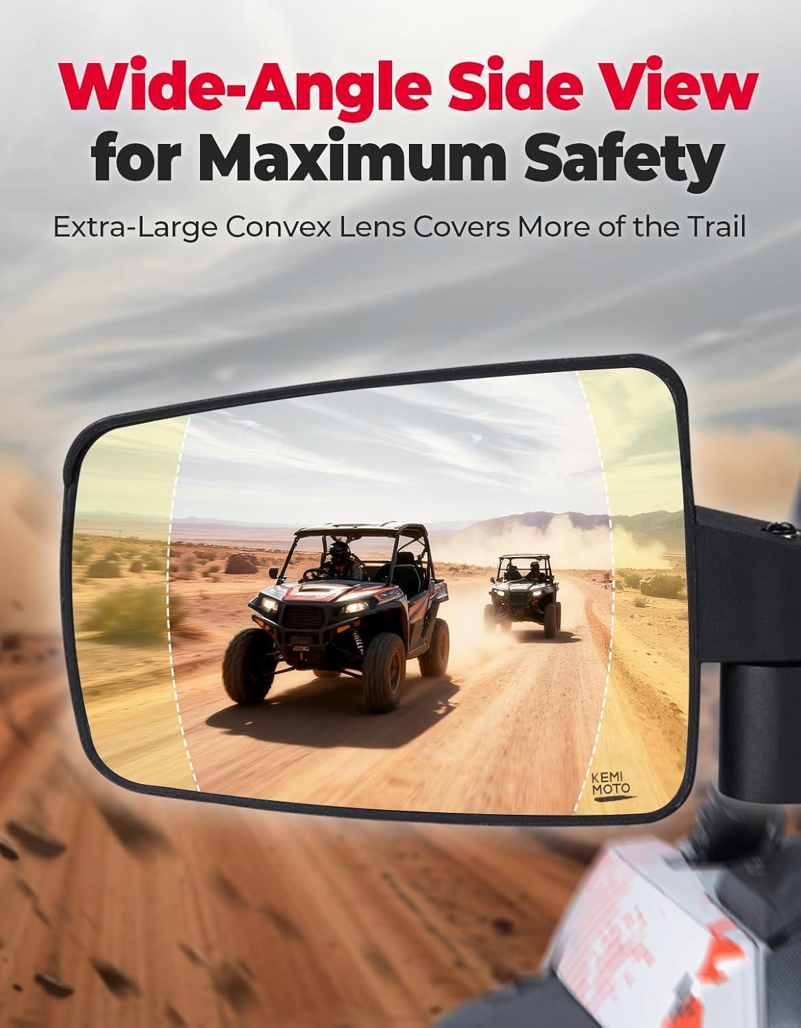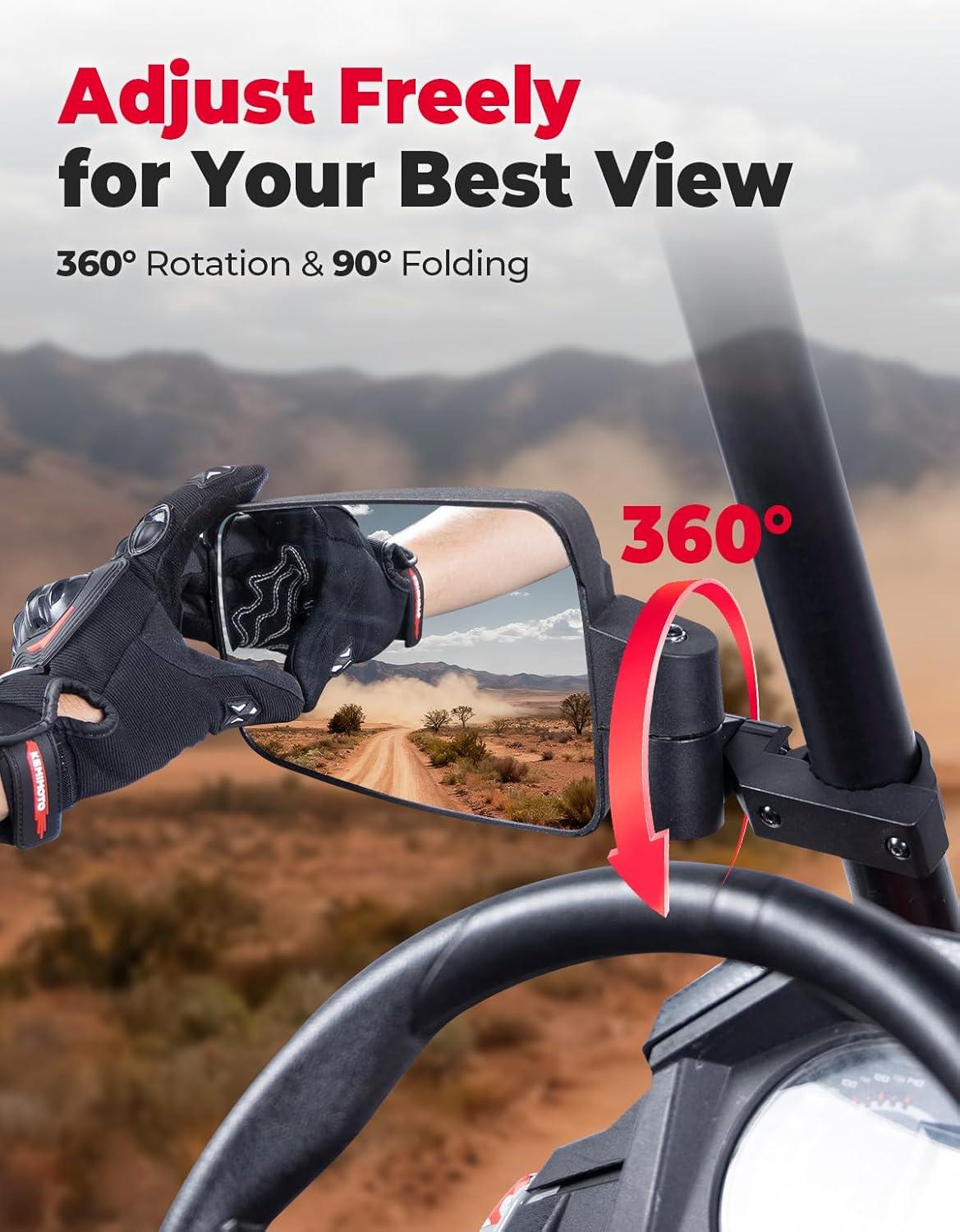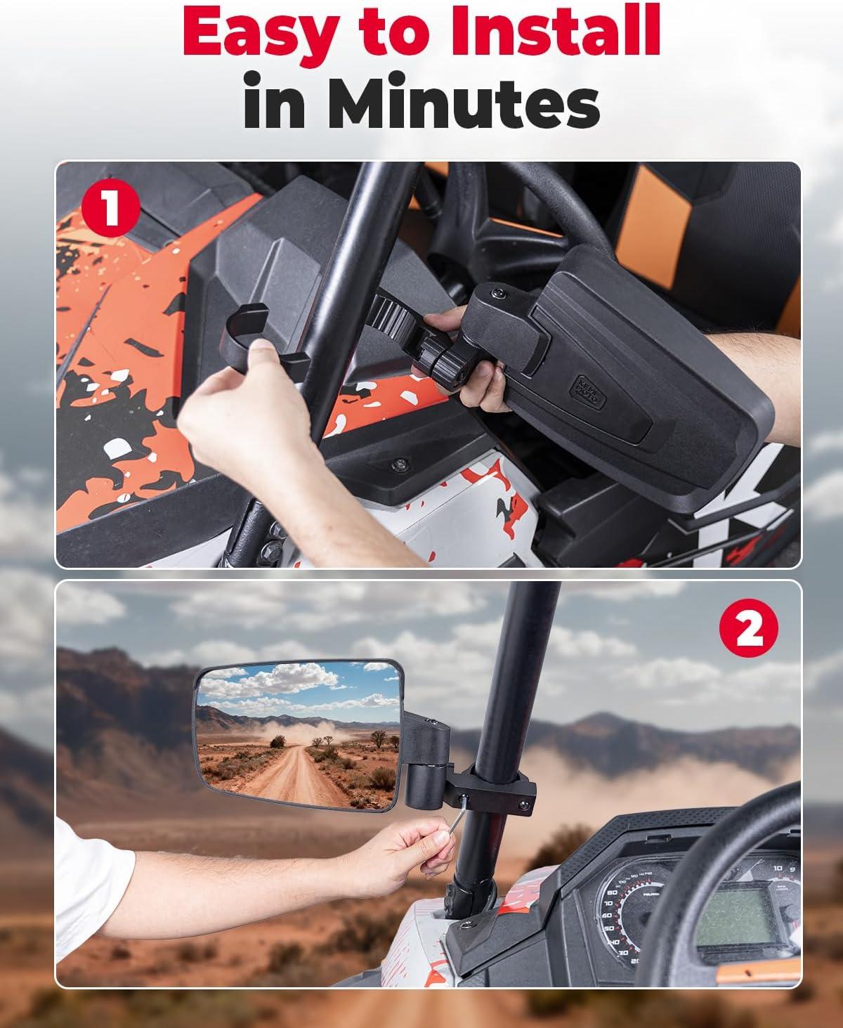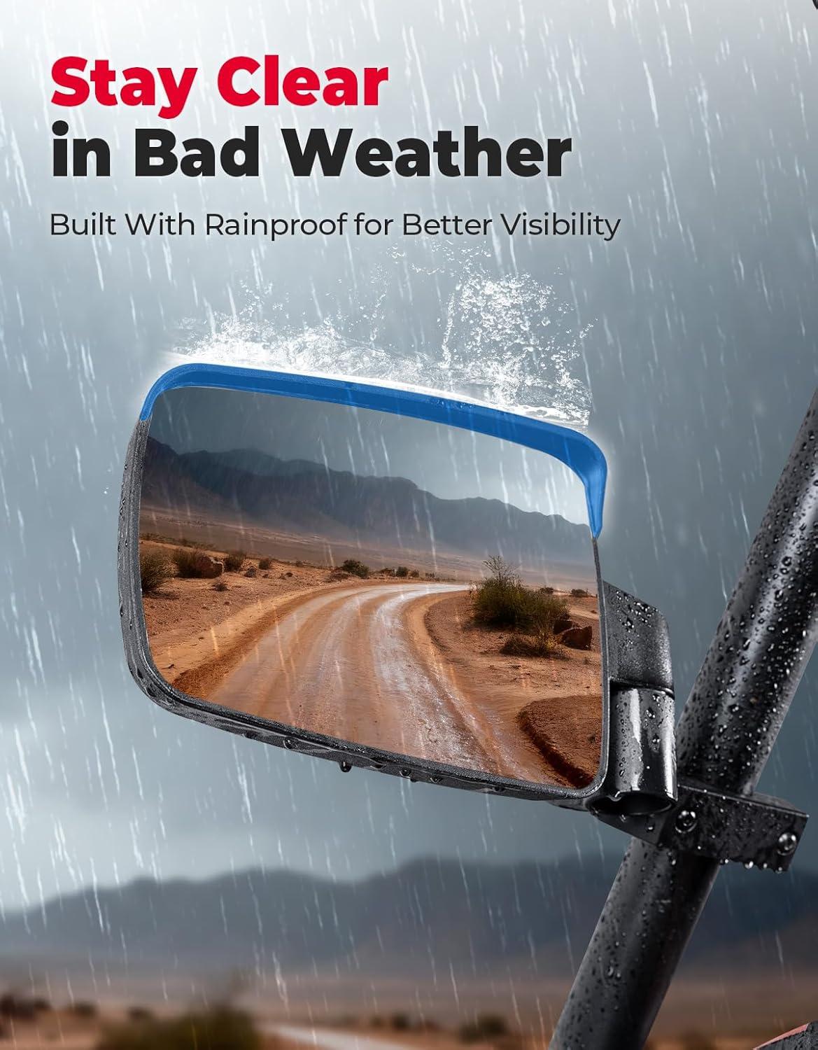 Make Backing Up Easier: Made with high-quality ABS housing and a large 7.7″x5.7″ mirror surface, these mirrors are perfect for all kinds of environments—mountains, hills, farms, off-road trails, sand dunes, and mountain paths. They can take out the danger of backing up blind