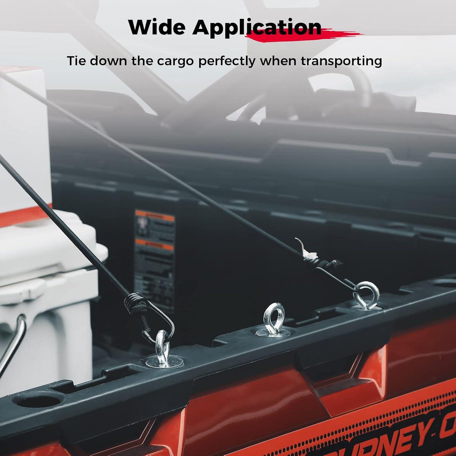Superior Gripping Strength: With the UTV tie-down anchors inserted in the bed hole, they provide a strong grip. When used with straps and bungee cords, these tie-down anchors play an important role in securing the cargo you are carrying, such as hunting gear, fuel, cooler, gun toolboxes, etc