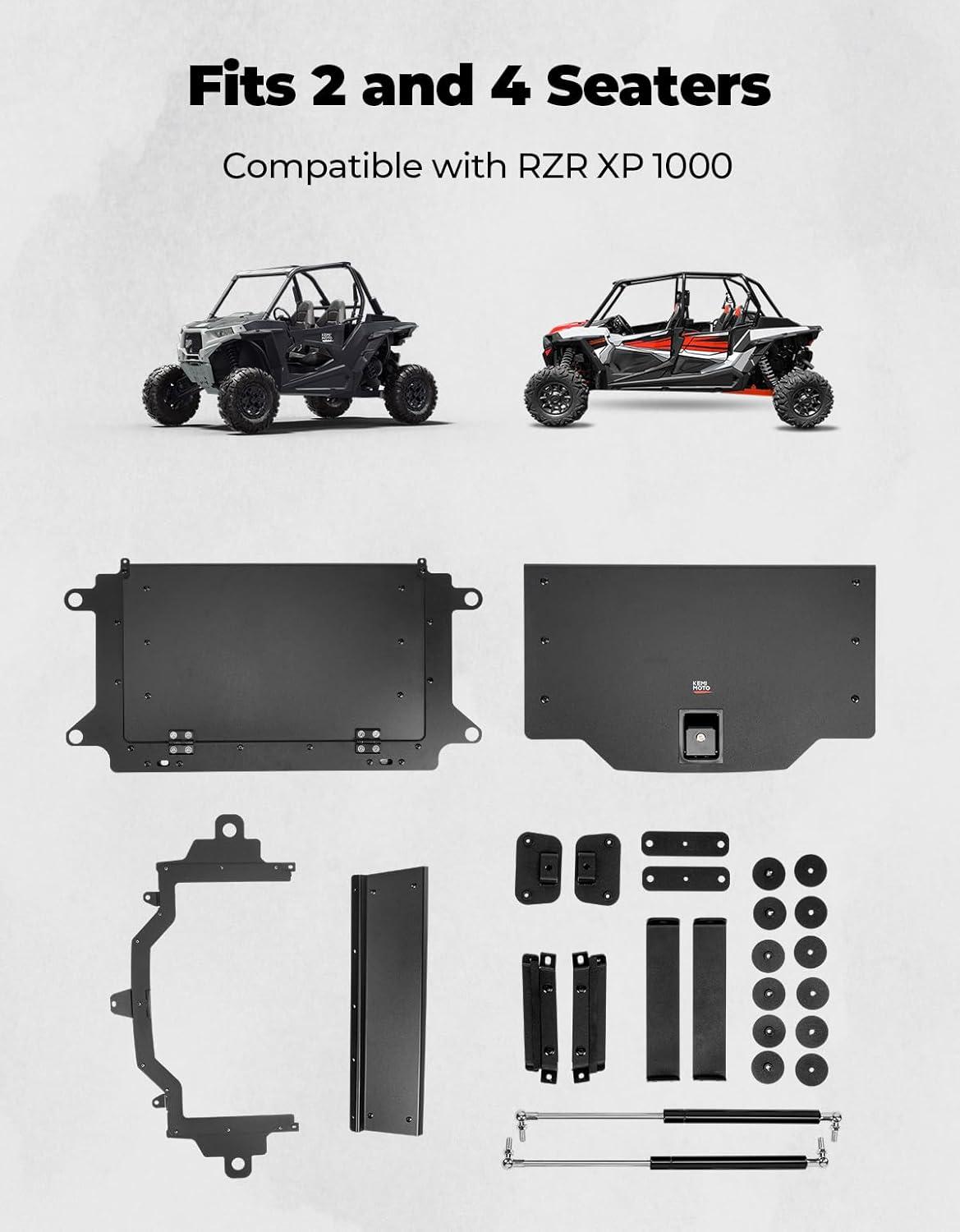 Sleek Black Finish: Finished with a black powder coating, the exterior surface delivers a sleek metallic appearance, enhancing the overall look of your vehicle.This rear trunk Lid is compatible with 2014-2023 RZR XP 1000, RZR XP4 1000 and Polaris RZR XP 1000 Turbo S4