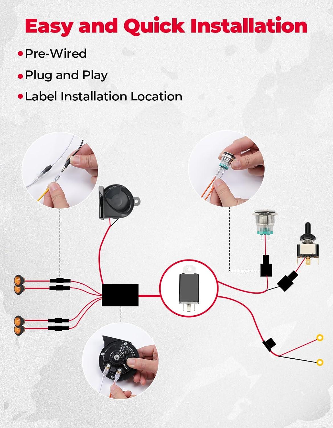 KEMIMOTO UTV Turn Signal Kit with 105D Horn, UTV Street Legal Kit with Toggle Switch, Plug and Play Easy Installation Compatible With Polaris, Can-Am, Teryx, John Deere, Golf Cart, Arctic Cat, CFMOTO