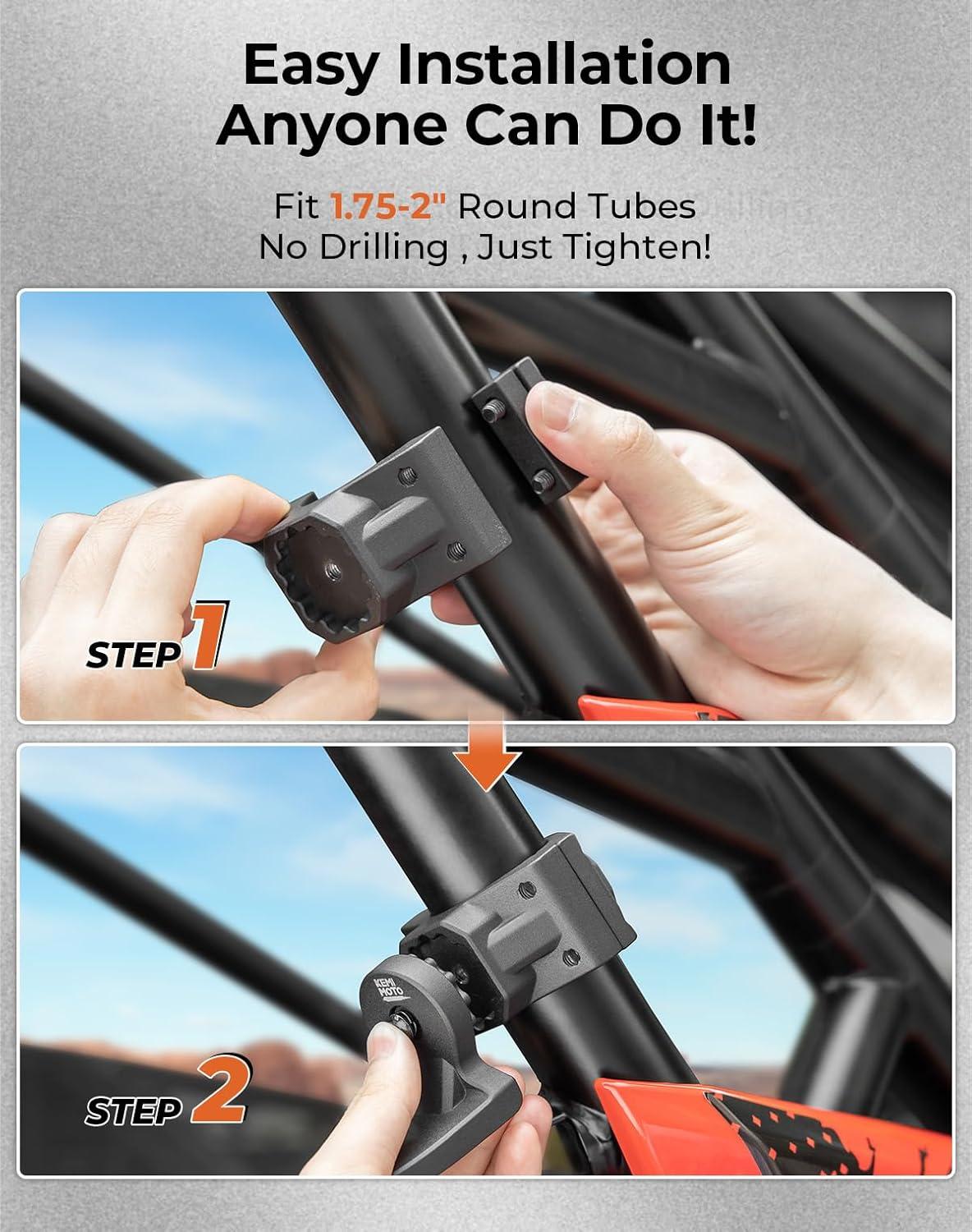 KEMIMOTO UTV Whip Mount Flag Whip Light Mount 2PCS, Heavy Duty Adjustable for 1.75-2 inch Roll Bar Cage, Compatible with RZR 900 1000 XP Pro Turbo Maverick Commander