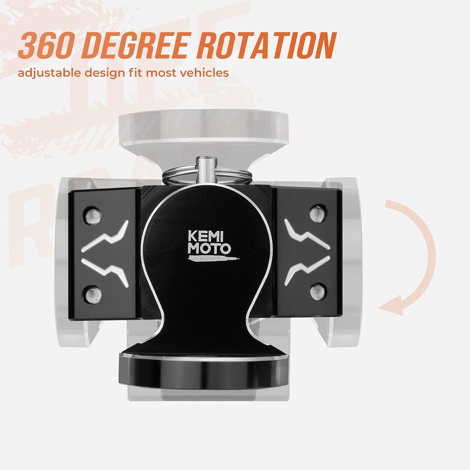 Fitment: kemimoto whip light mount universally fits most models of UTVs with 1.75-inch to 2-inch roll bar, Compatible with Can-Am Maverick X3/ Maverick/ Commander, Compatible with Polaris RZR 900/1000/ XP/ Pro, Compatible with Kawasaki Mule/ YXZ and Talon. The vehicle list is shown in detail in the description below.