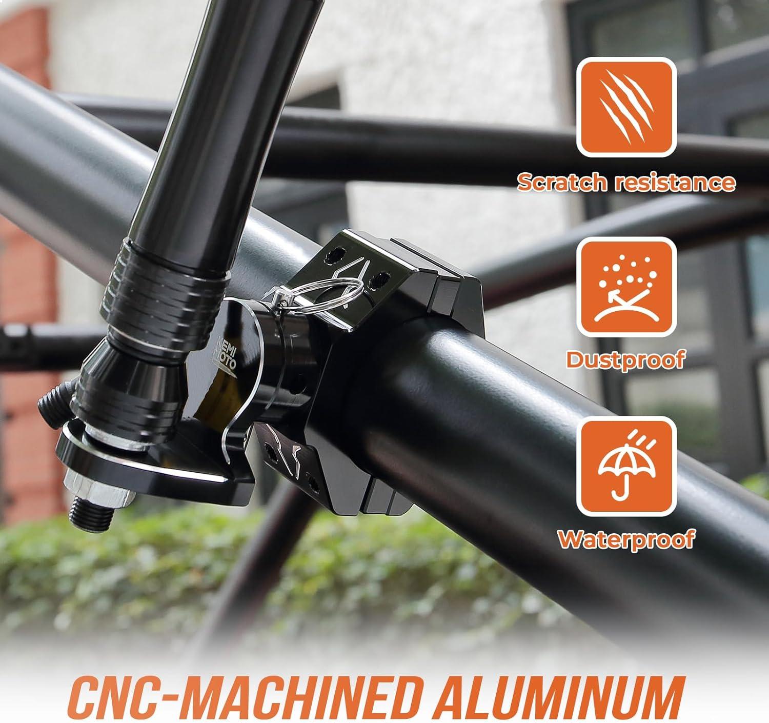 Adaptability: The hole size of UTV flag mount is 12mm and can be used to hold your off-road whip light, flag, LED light bars, pole, chasing light, CB radio antennas, etc. kemimoto utv whip mount can adapt different types of light and antennas with 12mm and held securely.No more worry about falling down or losing your whip lights while riding.