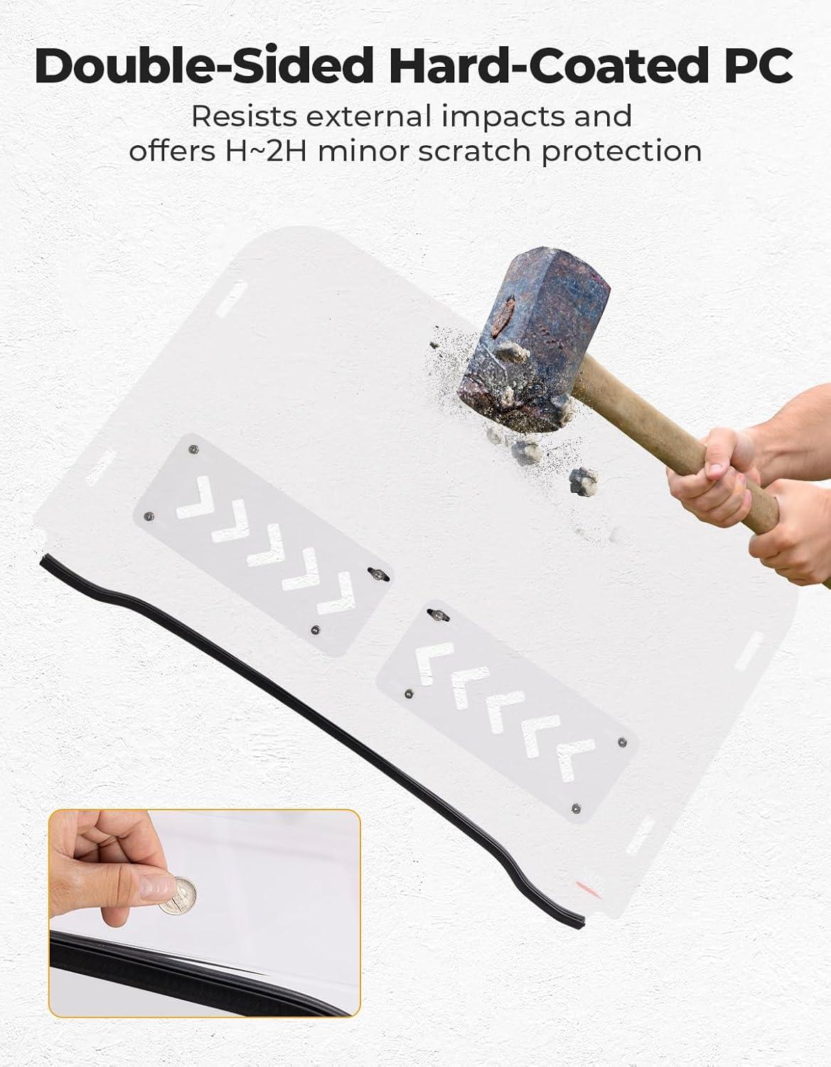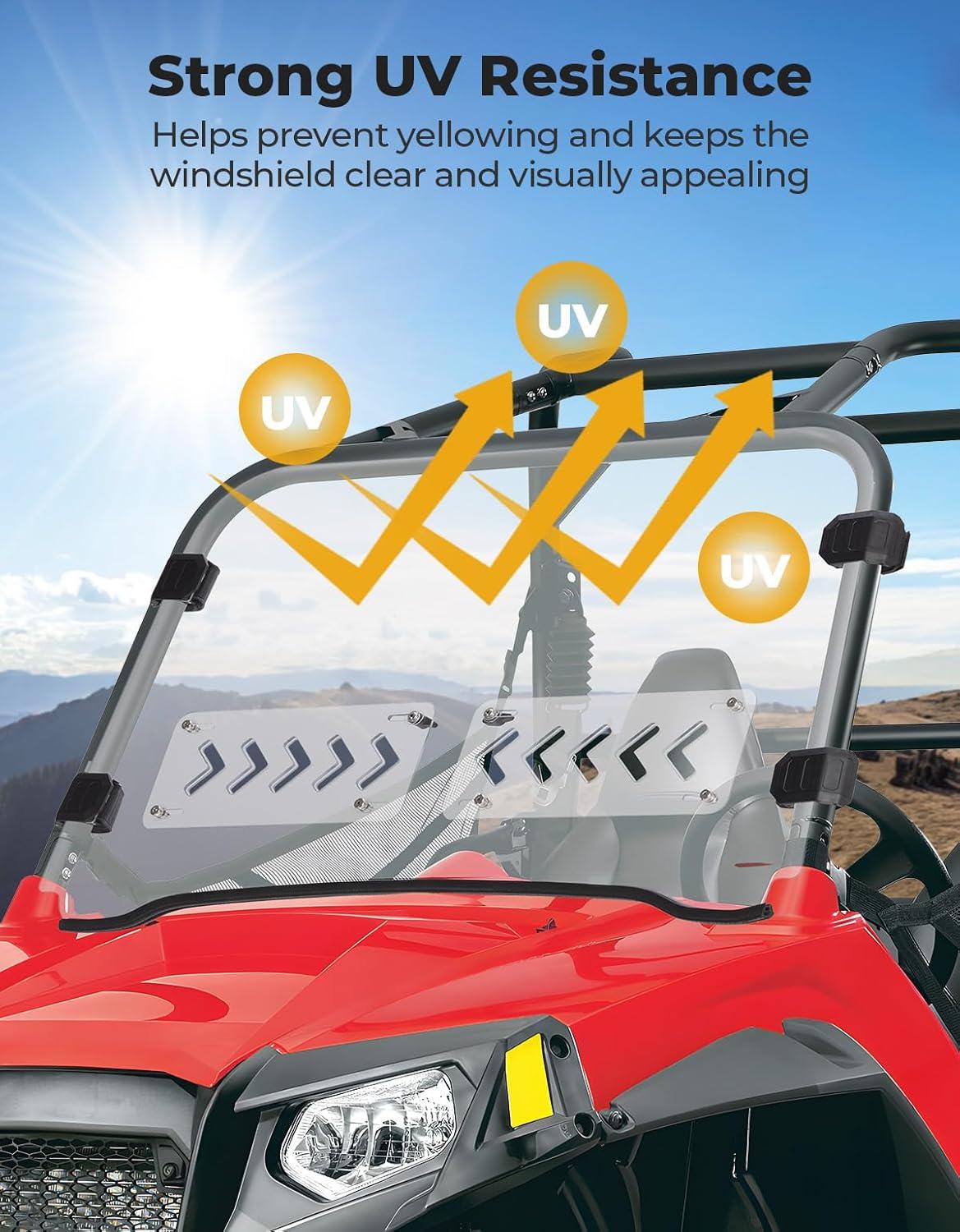 High Transparency: When you're out with your UTV, high light transmission is crucial for a clear view of the terrain ahead. This windshield allows up to 95% of light to pass through, ensuring your vision stays unobstructed during long drives while helping to reduce eye fatigue. Enjoy every adventure with a crystal-clear, uninterrupted view!