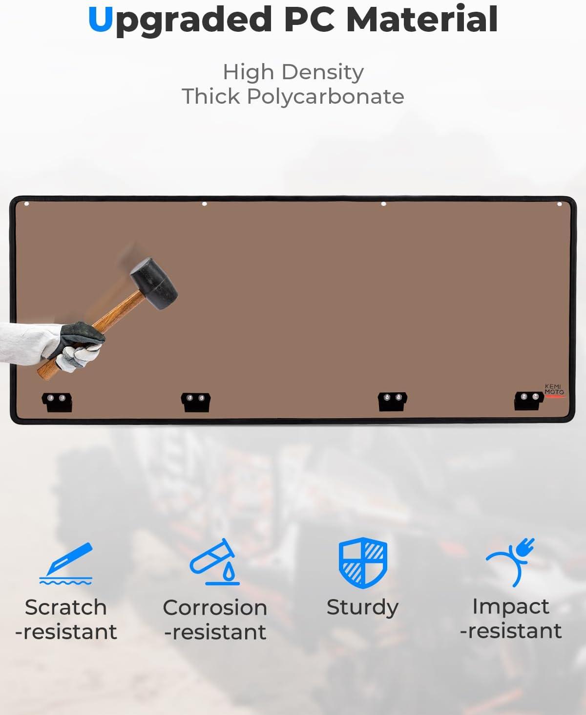 Double-Sided Hardened PC Material: The KEMIMOTO rear windshield is made of double-sided hardened polycarbonate material, 250 times stronger than ordinary glass and 25 times stronger than acrylic. The rear window features advantages such as shatter resistance, impact resistance, corrosion resistance, and scratch resistance