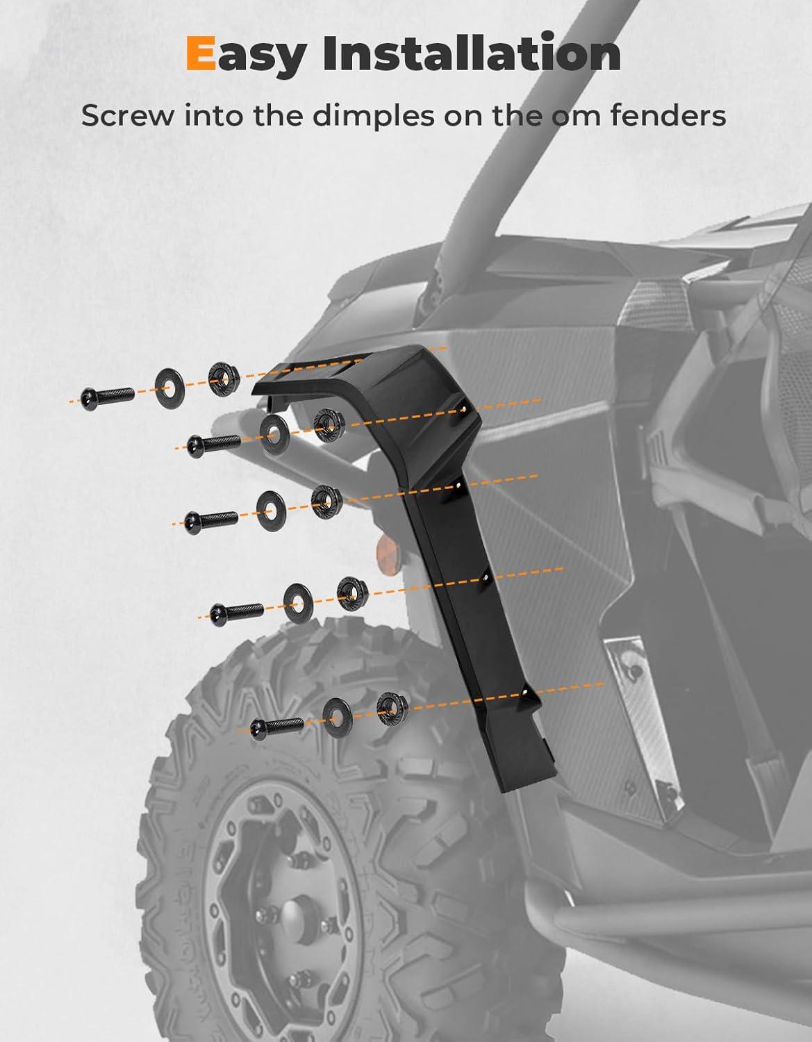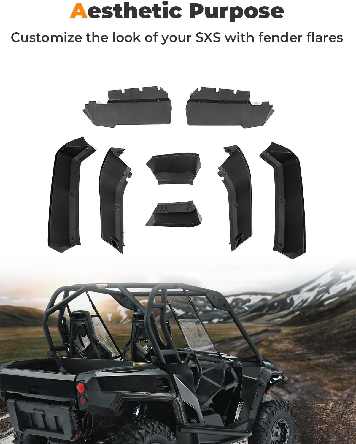 Kemimoto Wider Fender Flares Compatible with Can Am Commander 1000 800 R Max Mud Guards Flaps Front and Rear OEM Replacement #715002451, 715001013