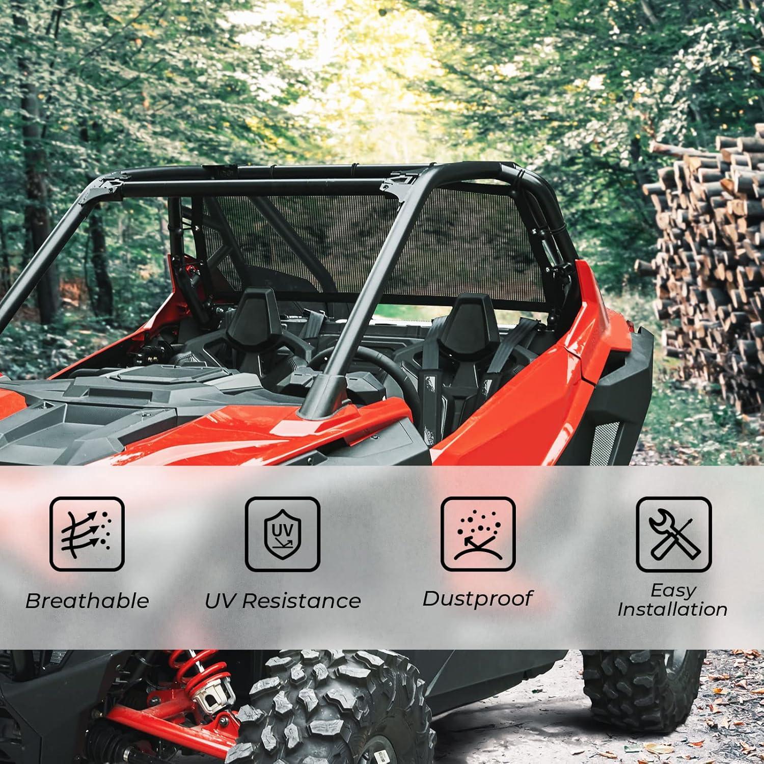 Fitment & 5 Min Installation: UTV mesh is compatible with 2020-2025 Polaris RZR Pro XP / Premium / Ultimate / 4 / Polaris RZR PRO R. This window shade is easy to install and can be quickly removed if necessary. It attaches securely to the roll cage using durable ball bungees and straps, ensuring a tight fit