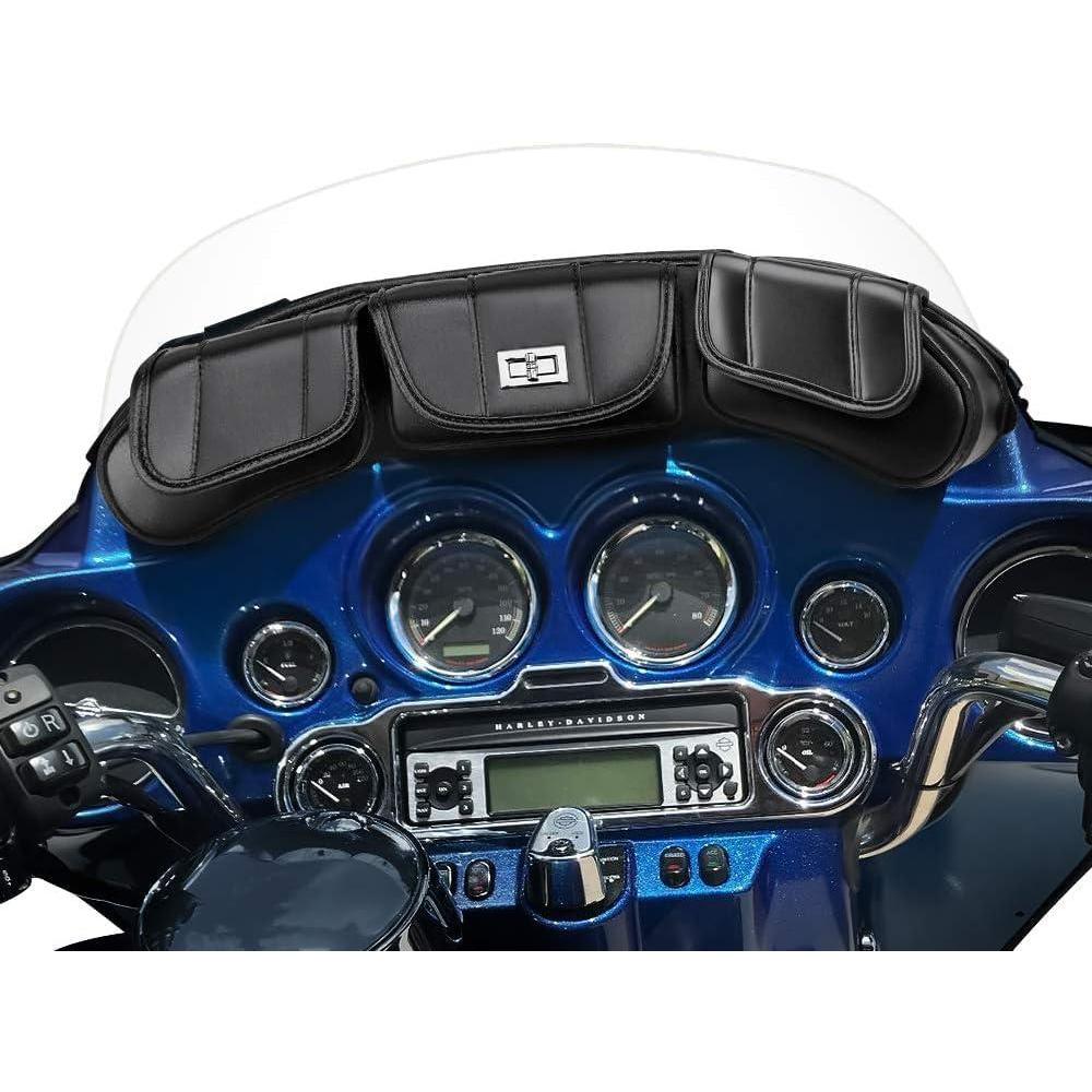 Enough Capacity: Windshield bag saddle has three pouch pockets that can hold sunglasses, smartphones, keys, gloves and so on. It fits 2014-2024 2025 Touring Street Glide Electra Glide FLHX FLH, Street Glide Standard