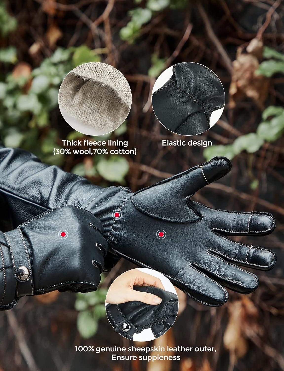 Genuine Leather: KEMIMOTO Winter Gloves has soft lining and genuine leather outer, ensure suppleness, strength, and comfort during use. Protect your hands from the freezing steering wheel/shift lever and provide flexible meanwhile