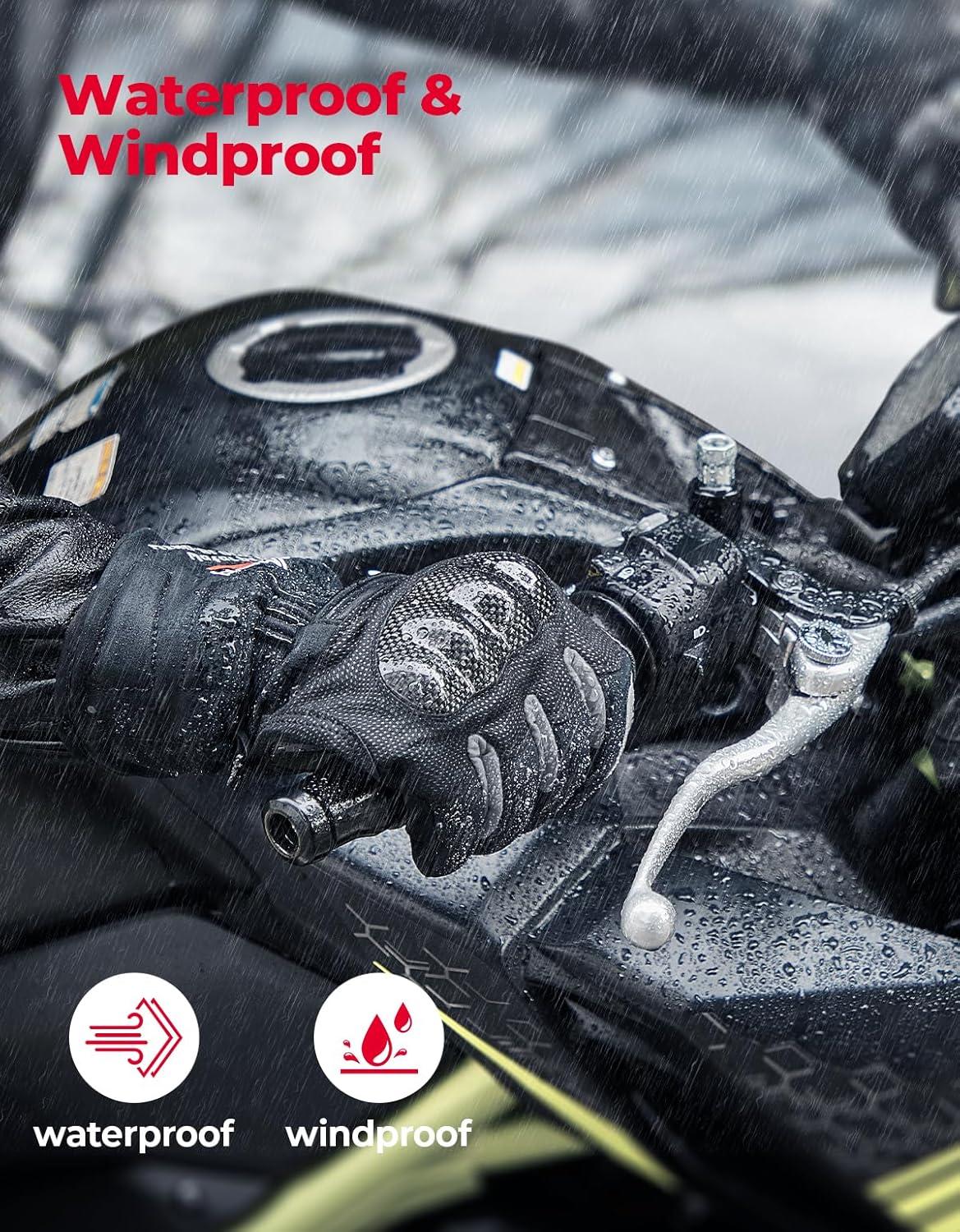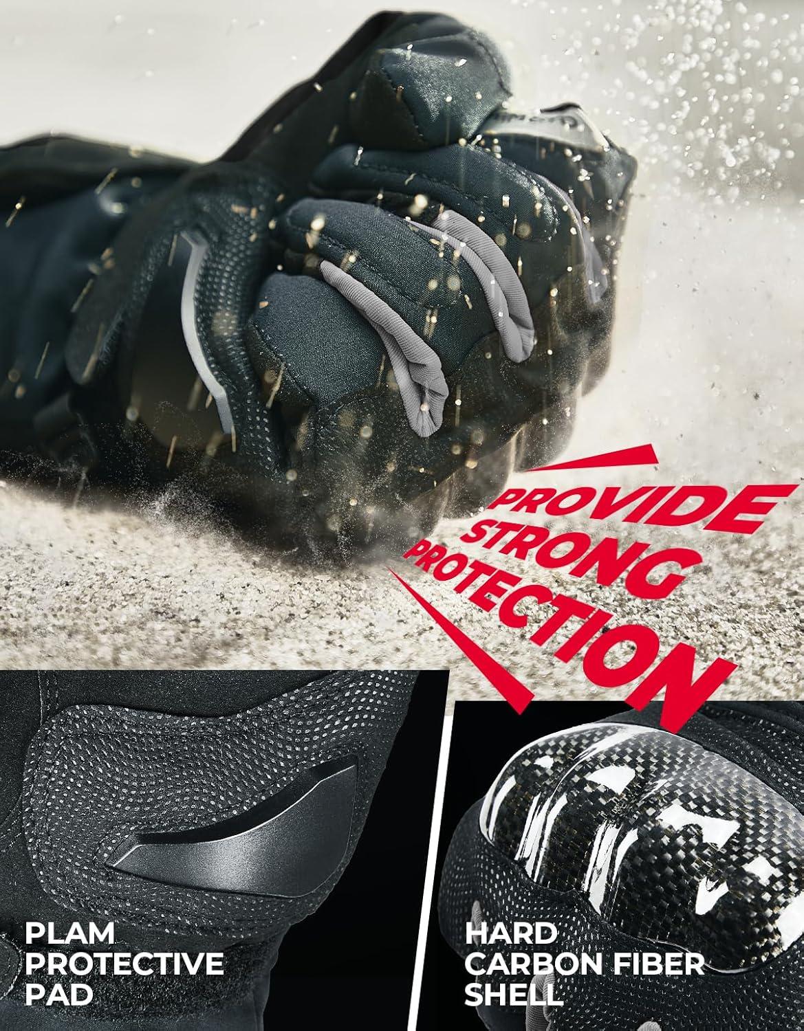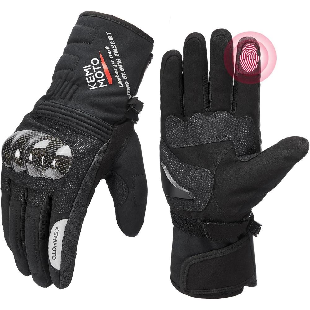 CARBON FIBER HARD KNUCKLE PROTECTIO:Kemimoto Winter Motorcycle Gloves Deaign with PVC Knuckle Protection, reinforced carbon fiber and padding protects the knuckle area from impact. Which can protect your hand knucle from shock or impact