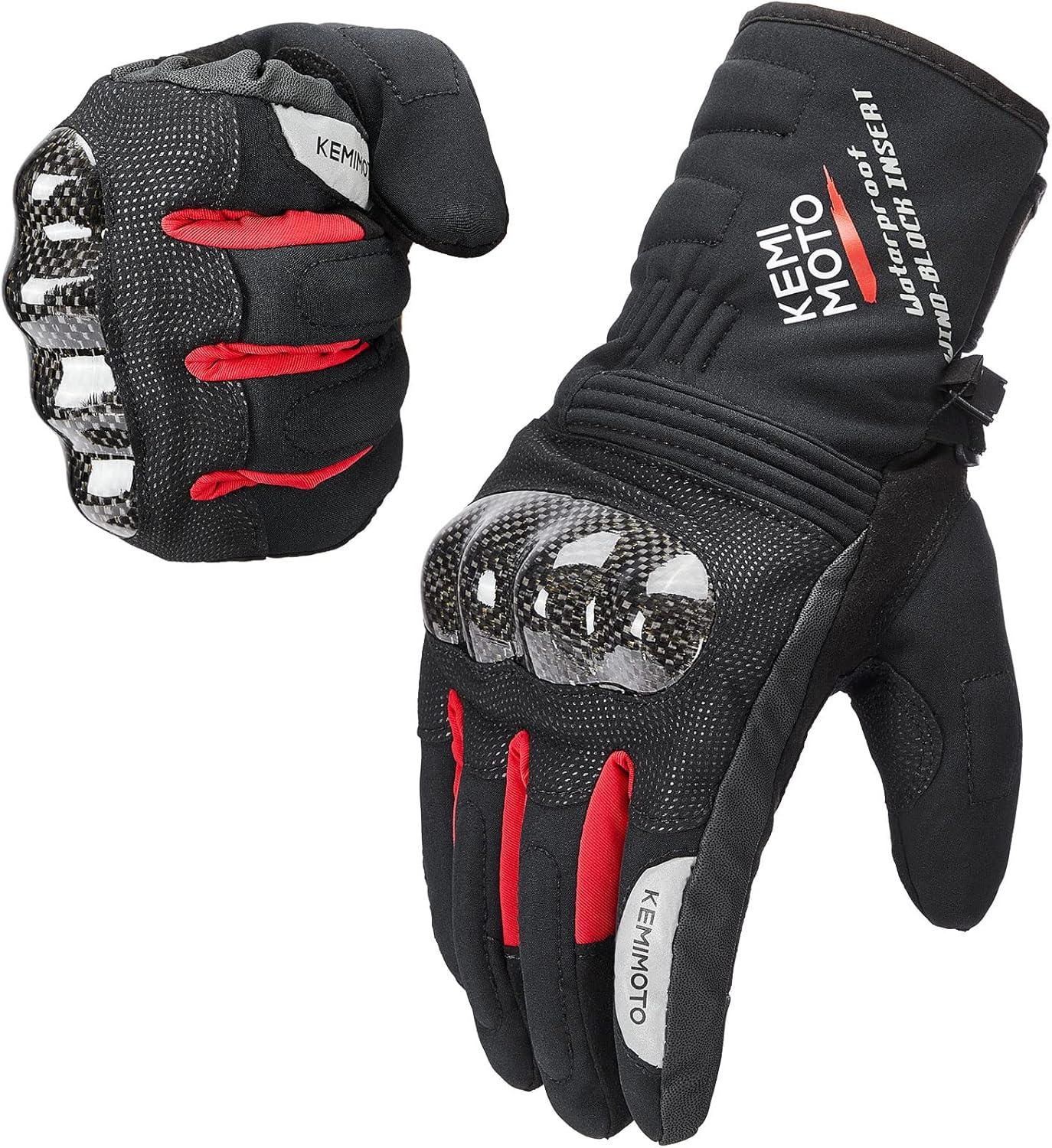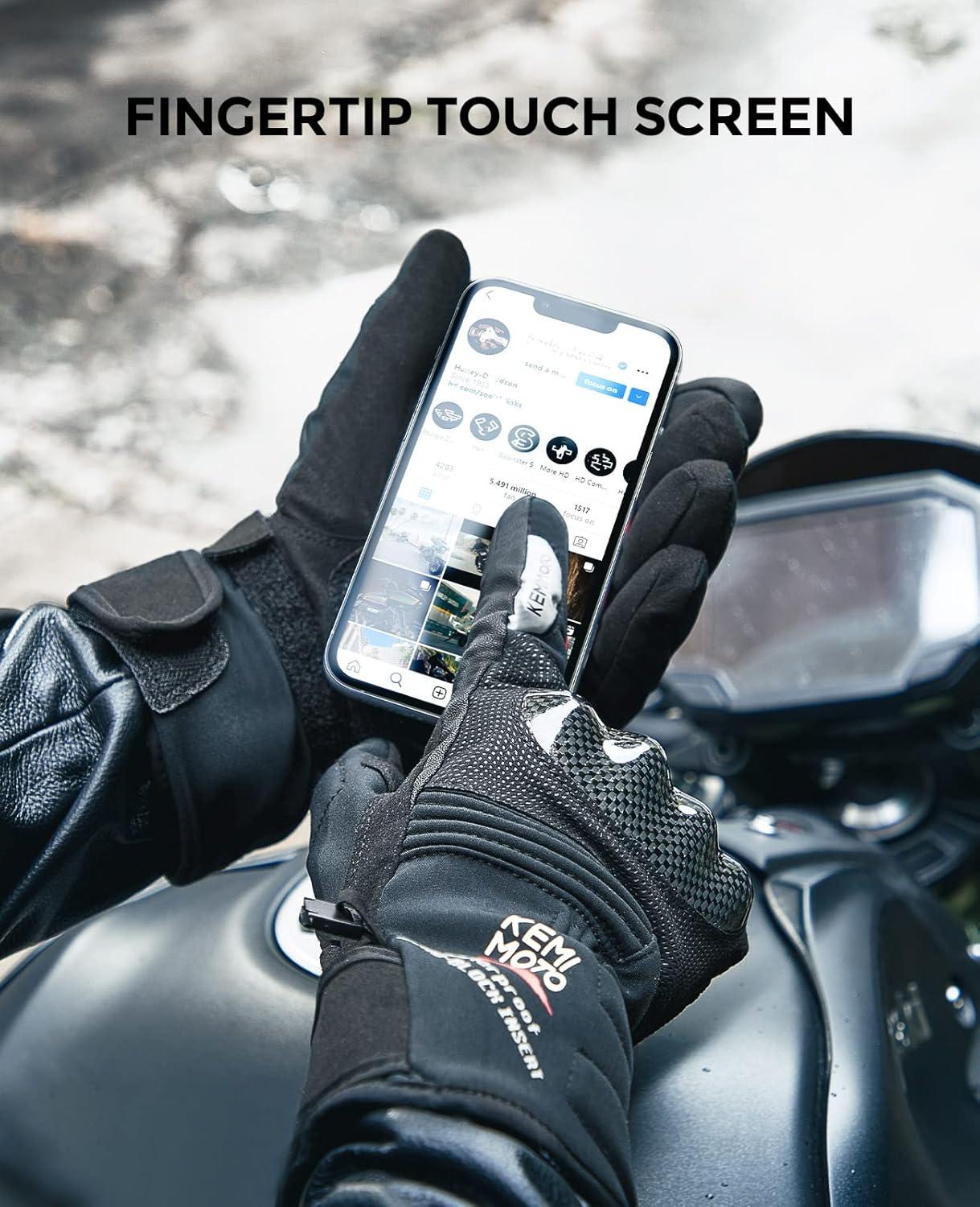 CARBON FIBER HARD KNUCKLE PROTECTIO:Kemimoto Winter Motorcycle Gloves Deaign with PVC Knuckle Protection, reinforced carbon fiber and padding protects the knuckle area from impact. Which can protect your hand knucle from shock or impact