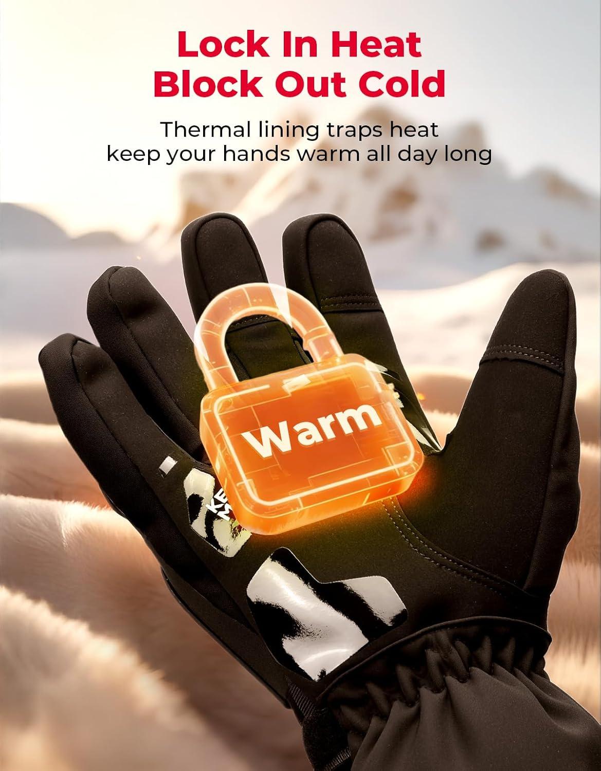 KEMIMOTO Winter Motorcycle Gloves, Rainproof Riding Warm Gloves with Touchscreen for Motorcycle Riding, ATV, UTV, Snowmobile Red L(Black)