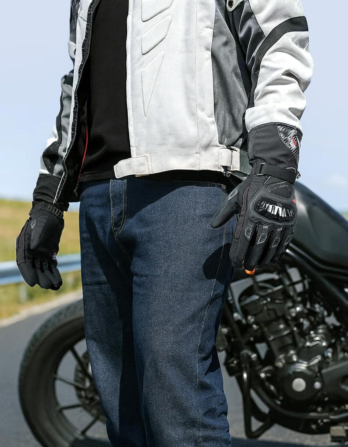 Hard PVC Shield Protector: The motorcycle winter gloves for men are designed with hard plastic PVC shield on the back of the hand. The gauntlet motorcycle gloves are very stable and well thought out with the extra defense on the joints. To avoid your hands from bumps and abrasions when falling