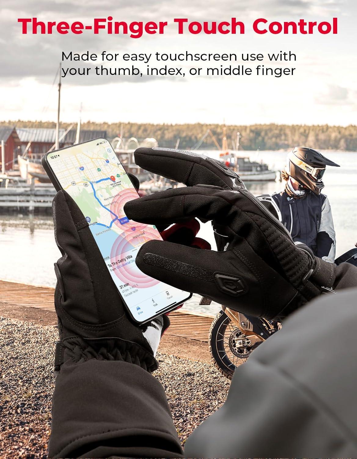 Three Fingers Touchscreen: The tip of the forefinger, middle, and thumb of the winter motorcycle gloves are made from conductive touch screen leather. So you can do everything without restriction, even if you wear gloves, you can still use the mobile phone or navigation device easily