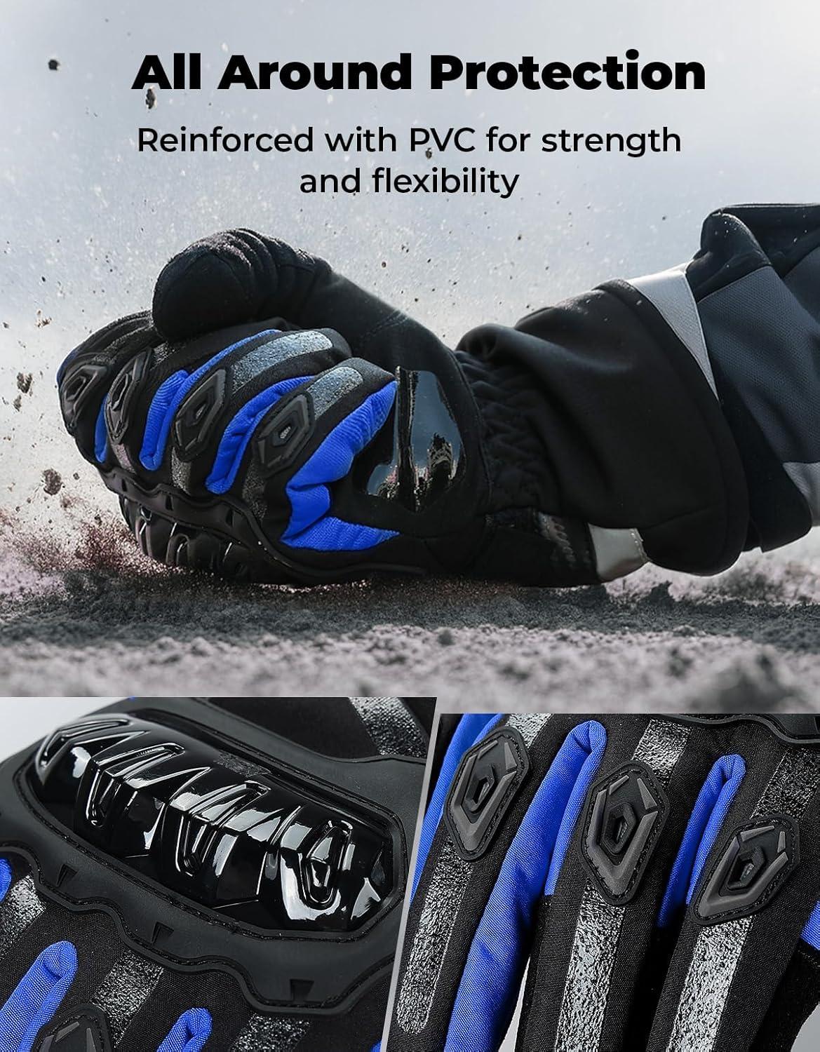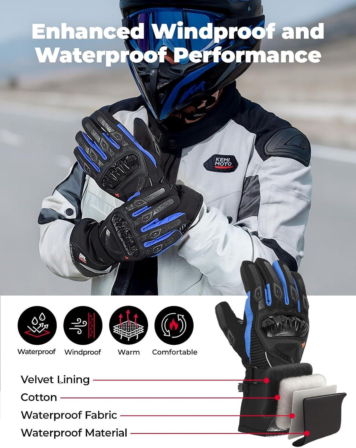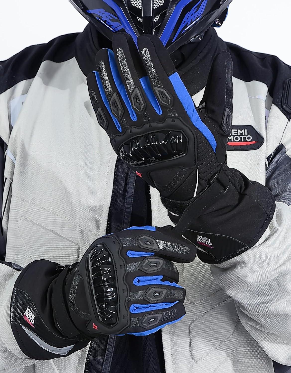 KEMIMOTO Winter Motorcycle Gloves, Rainproof Riding Warm Gloves with Touchscreen for Motorcycle Riding, ATV, UTV, Snowmobile Red L(Blue)