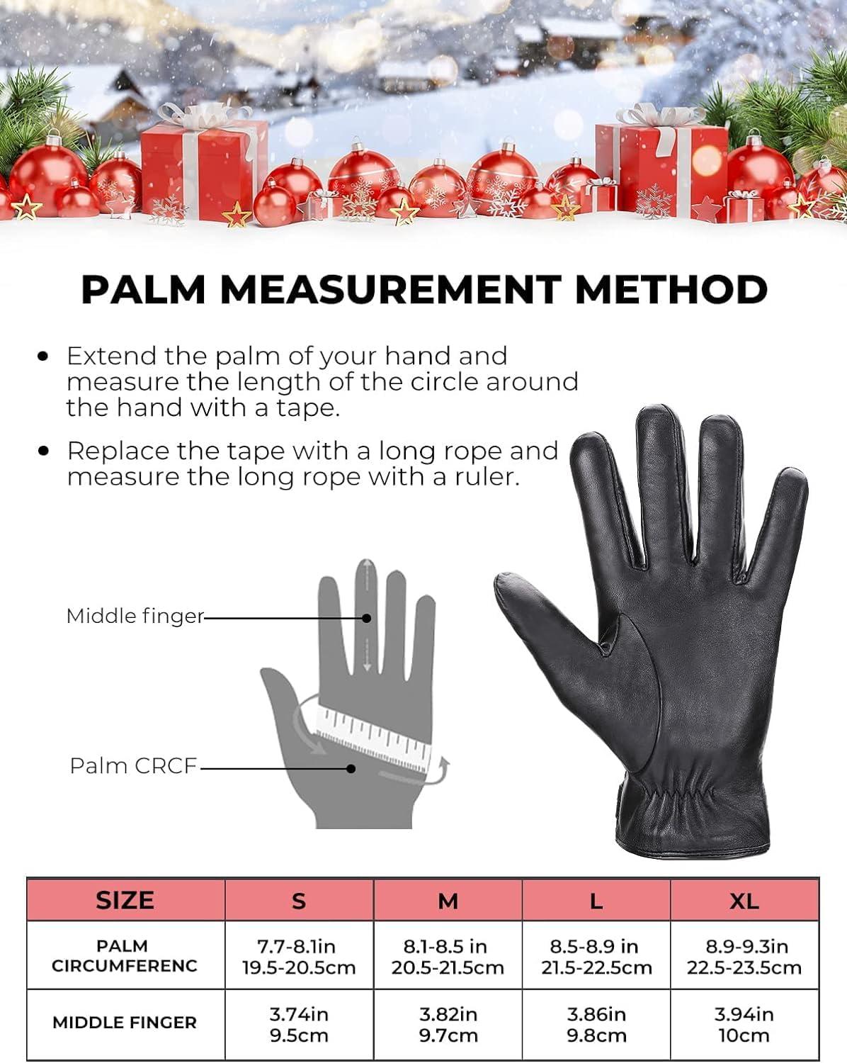 imageKEMIMOTO Winter Genuine Leather Gloves for Men Sheepskin Drving Gloves Cashmere Lined for Motorcycle Riding Touchscreen Short Wrist Black XL