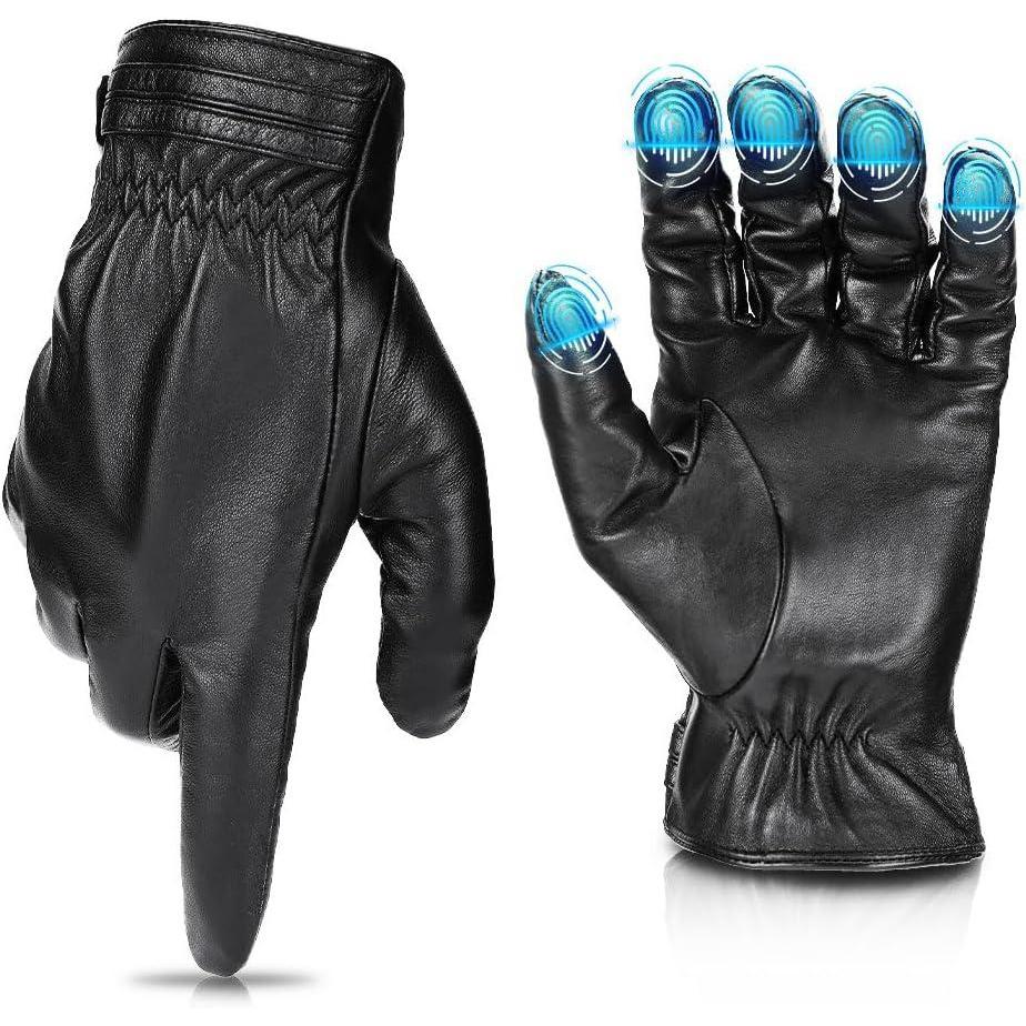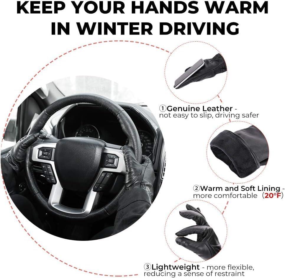 KEMIMOTO Winter Sheepskin Leather Gloves for Men Women Touchscreen Warm Soft Cashmere Lined Driving Texting Riding Gloves