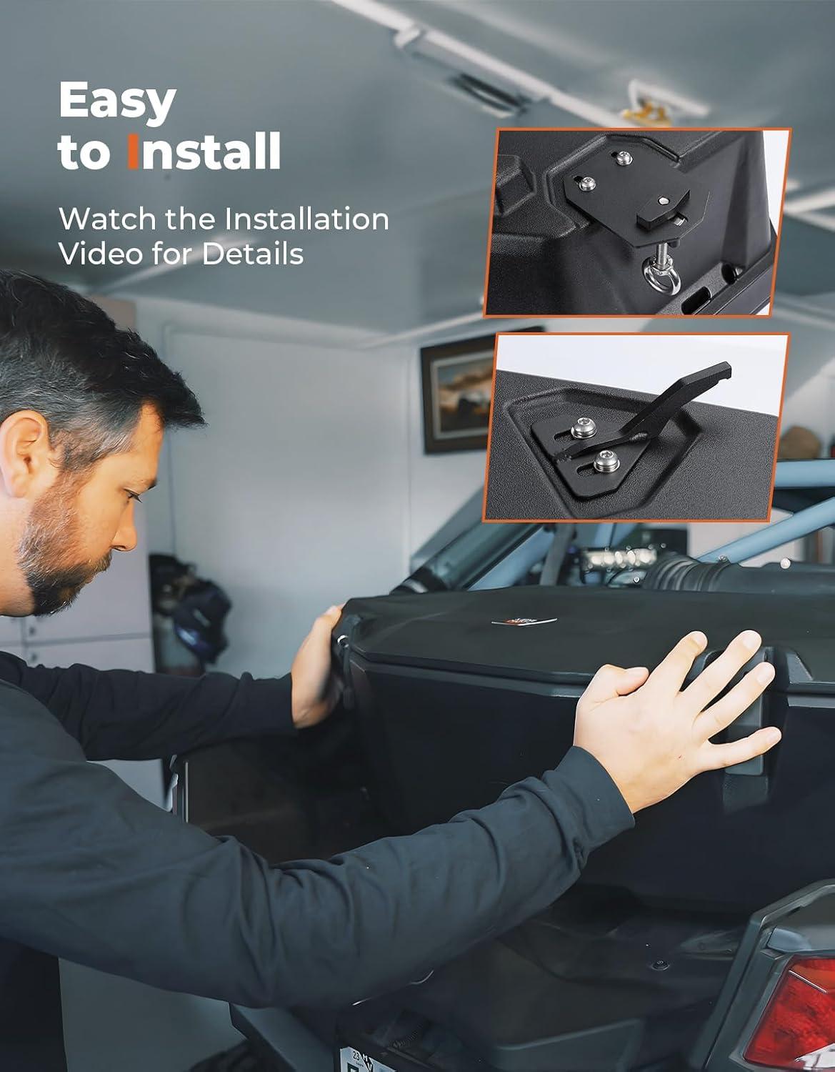 Secure & Easy Installation: The X3 storage box comes with rack fasteners for quick and easy installation. It fits snugly in your UTV and ATV bed, staying firmly in place on dunes, trails, or steep terrain
