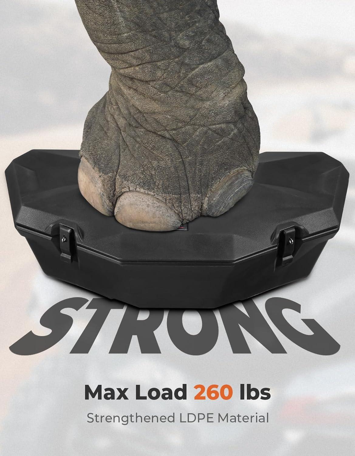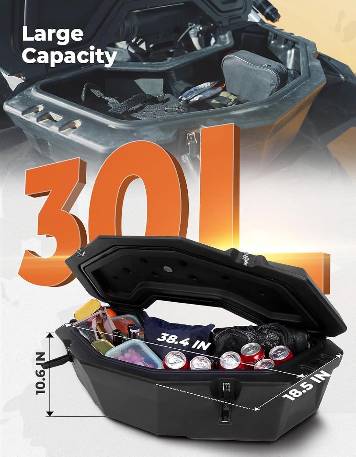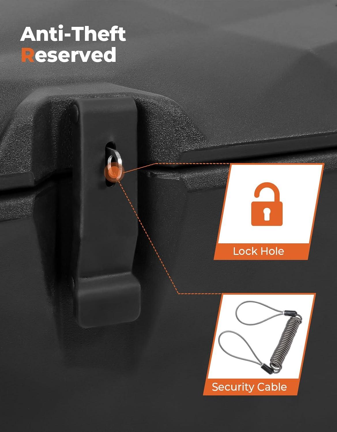 8 US Gal (30L) Large Capacity: The X3 cargo box offers ample space for tools, drinks, clothes, and all your adventure essentials. Perfect for outdoor enthusiasts on trails or long trips. Note: This box is not insulated