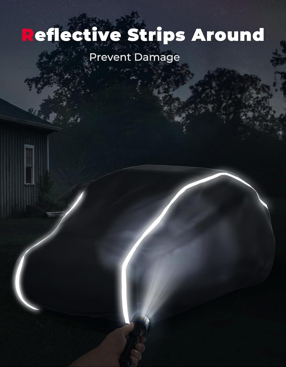DURABLE: The cover is made of Oxford cloth. At the fabric seams, we use double stitching and waterproof press glue to join the fabrics. It's been tested that this cover can be used in the garage and outdoors, would be suitable for most weather and environments, but please remove the cover when your X3 is trailered