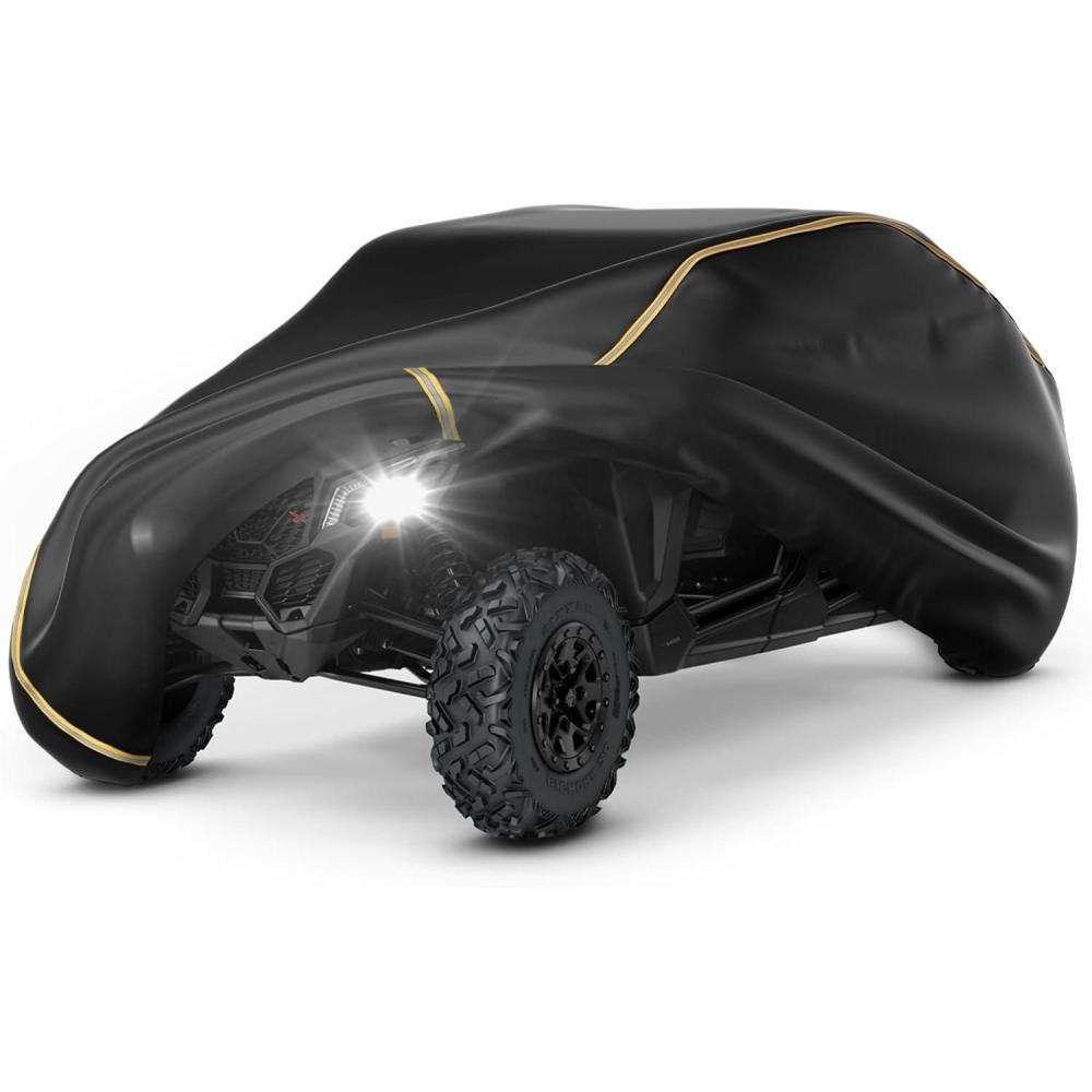WATERPROOF: 100% waterproof PU coating and waterproof sealing applied to this UTV cover, preventing your side by side from rain, snow, dust, leaves, and so on. Doesn't get brittle and hard even in cold weather. Keeps your UTV dry and clean