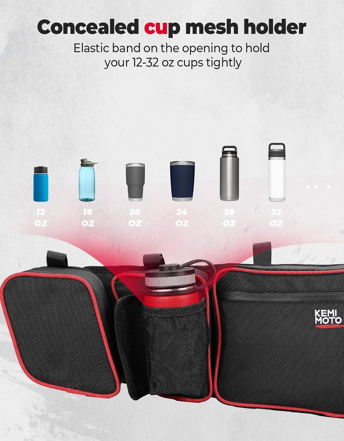 SPECIAL DESIGN: KEMIMOTO saddlebags compatible with can am maverick X3 has a concealed cup holder for you to hold your water bottle or drinks, and the removable knee pad is for keeping your legs comfortable, especially when your legs keep banging the door during a long and rough ride