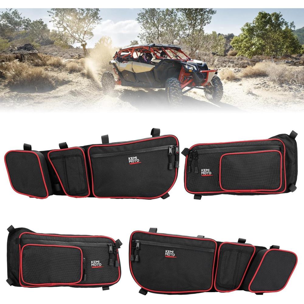 X3 FRONT AND REAR DOOR BAGS: KEMIMOTO storage X3 door bags are designed for X3 4 door models, included two front X3 door bags and two rear X3 door bags, compatible with 2017 2018 2019 2020 2021 2022 2023 2024 Can-Am Maverick X3 Max all models