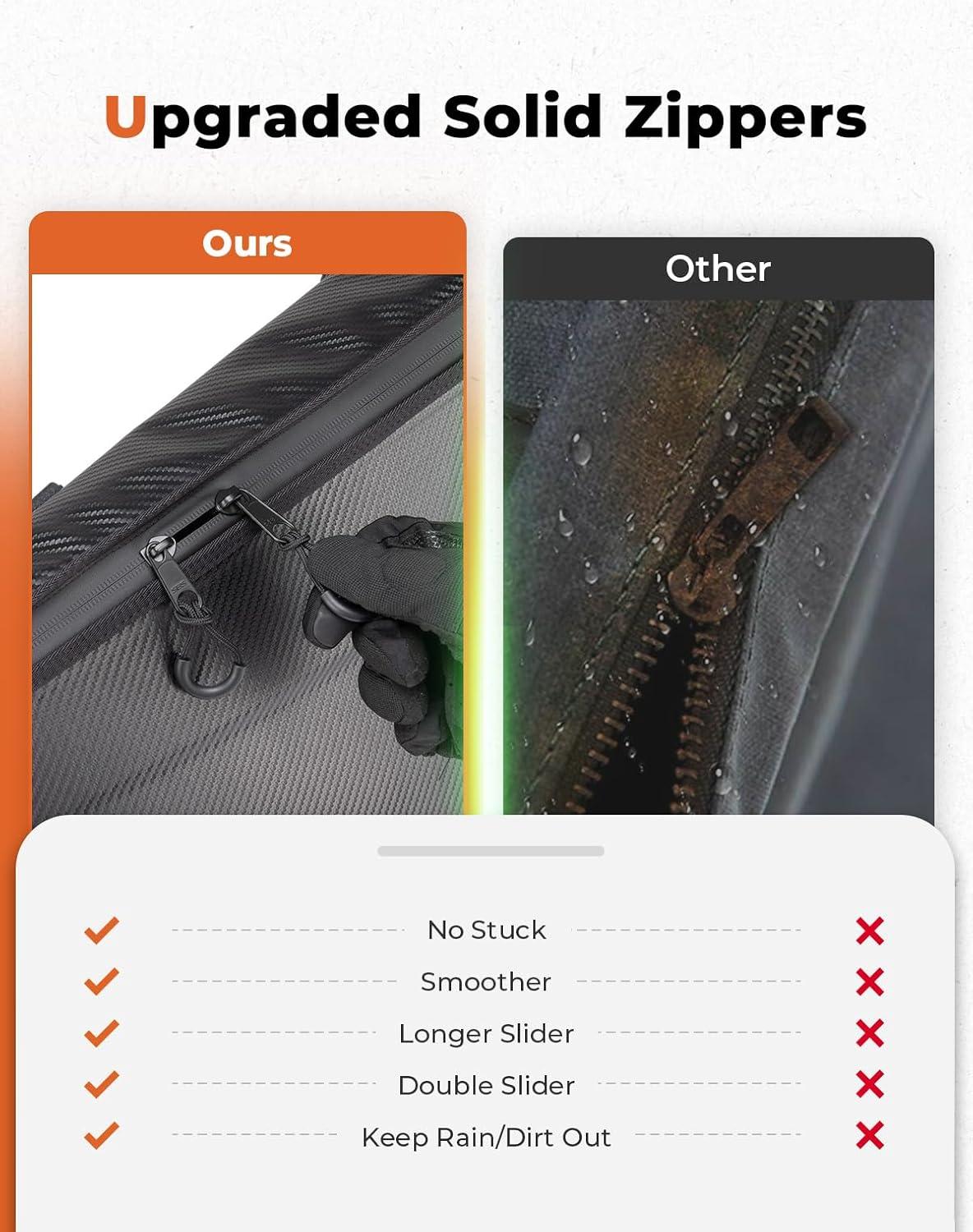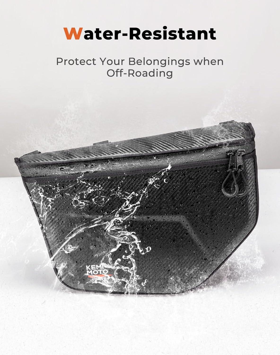 WATER-RESISTANT PERFORMANCE: The material and zipper are water-resistant. You can take these bags to off-road with no worries. They would protect the items from rain and dirt