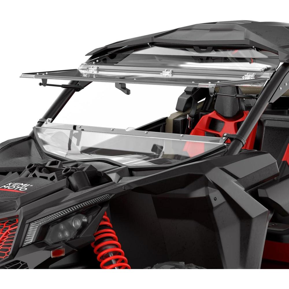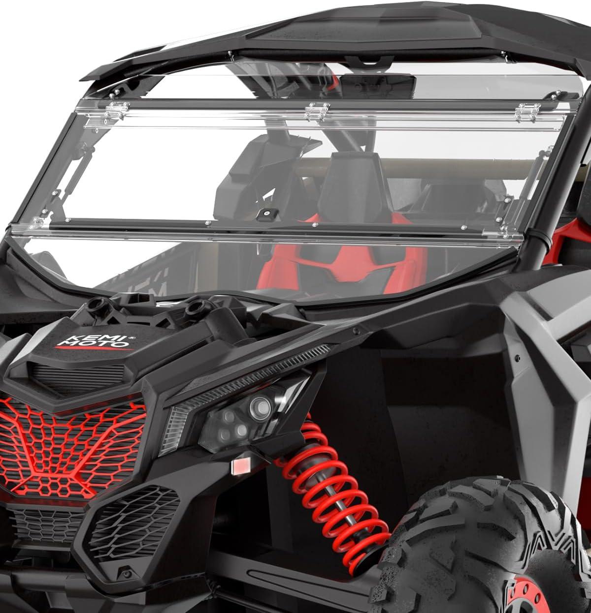 Fitments: KEMIMOTO Scratch-resistant flip windshield is compatible with 2018 Can-Am Maverick X3 900, 2017+ Can-Am Maverick X3 Turbo/Turbo R/X DS Turbo R/X DS Turbo RR/X RC Turbo/X RS Turbo R/X MR Turbo R/MAX X RS Turbo R/MAX X DS Turbo. Not compatible with OEM or aftermarket front intrusion bar. Can be used with most soft or hard tops
