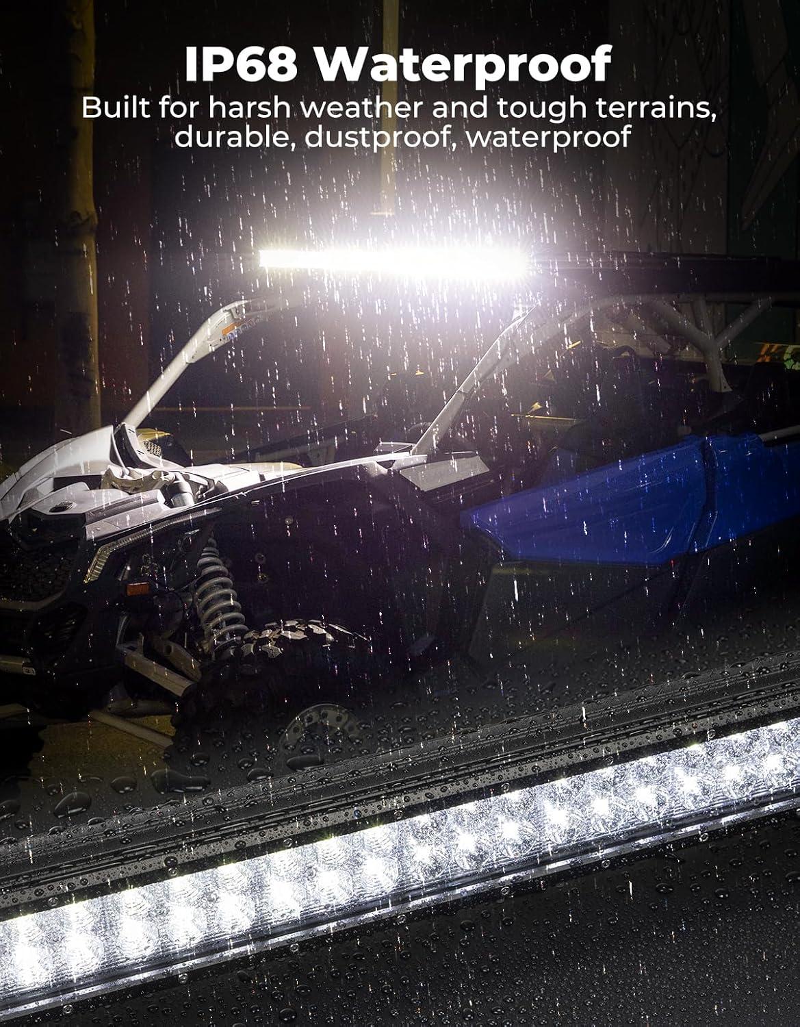 High-Power LED: This LED light bar features a 30,000-hour lifespan and boasts an IP68 rating, making it waterproof, dustproof, quakeproof, and corrosion-resistant for harsh environments