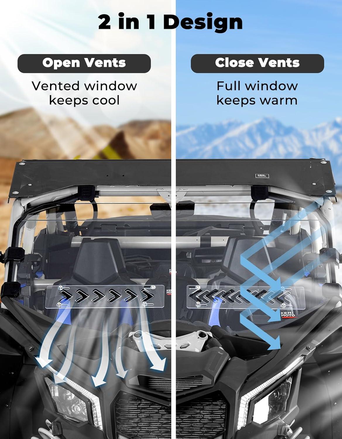 KEMIMOTO X3 Windshield 2-IN-1 Sliding Vented Window, Compatible with Can Am Maverick X3 and MAX Hard Coated PC Full Windscreen Airfolw Dustproof Rainproof, Fit Roof