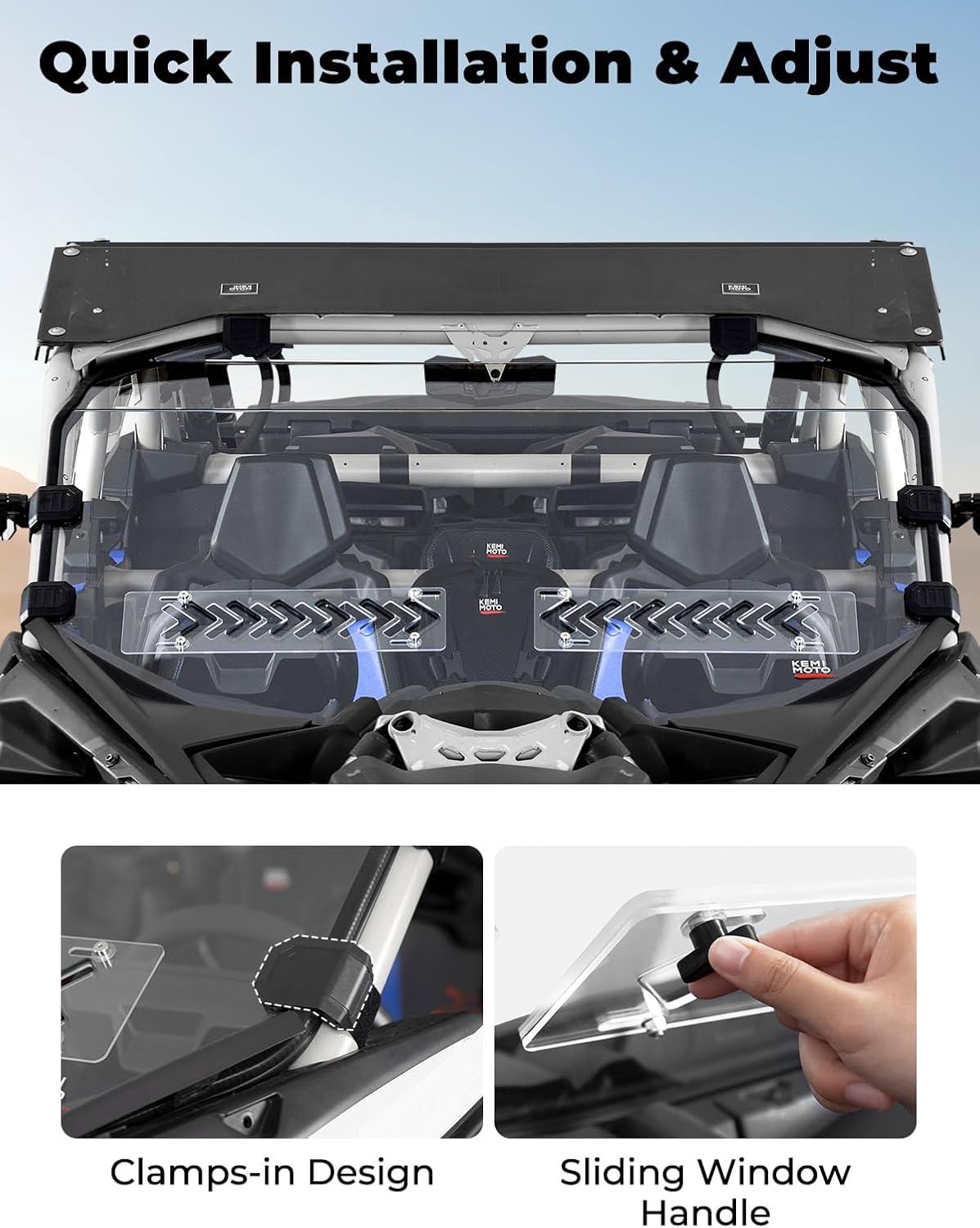 Be the first to review “KEMIMOTO X3 Windshield 2-IN-1 Sliding Vented Window, Compatible with Can Am Maverick X3 and MAX Hard Coated PC Full Windscreen Airfolw Dustproof Rainproof, Fit Roof”