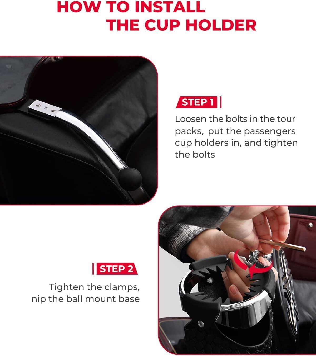 Easy to Install: The kemimoto cup holder are supposed to be compatible with touring 2014-2023 models with pack with rear speakers. More details can be referred to the Installation Video. It is easy to install and works great for your wife and girlfriend, especially on long trips